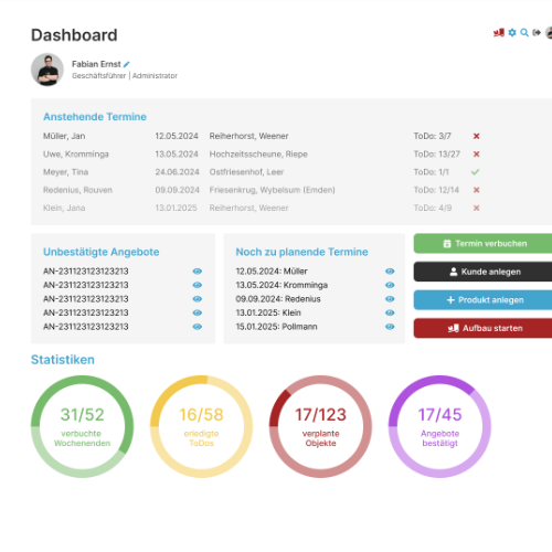 With the design for the CRM of „Brink Veranstaltungstechnik,“ I planned an internal CRM system that is currently being implemented. The CRM is being developed for the event technology company owned by a friend and me, and it is intended to help us better organize and manage our appointments in the future.