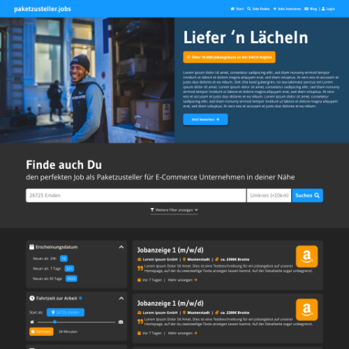 „paketzusteller.jobs“ was a design concept developed for a friend’s project idea. Our goal at the time was to help his company recruit new employees. This led to the idea of creating a job platform specifically for parcel delivery drivers, providing them with a centralized place to find relevant job opportunities.