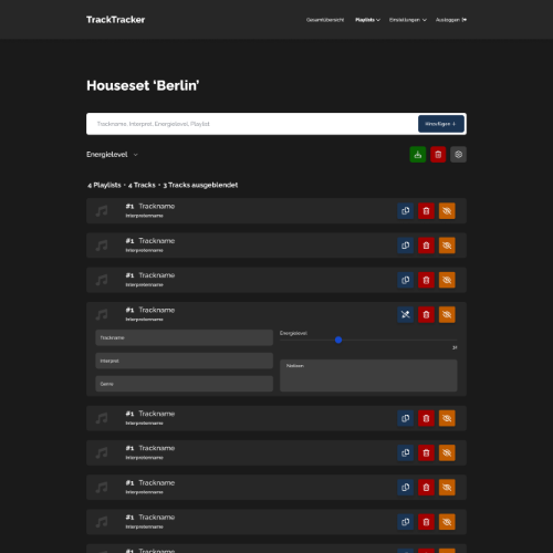 TrackTracker is the design for a project I once started to help organize my DJ playlists. While the design is nearly complete, the project itself was never fully developed. The goal was to create an app that would allow me to categorize various playlists and tracks, and use an algorithm to generate playlists based on specific criteria.